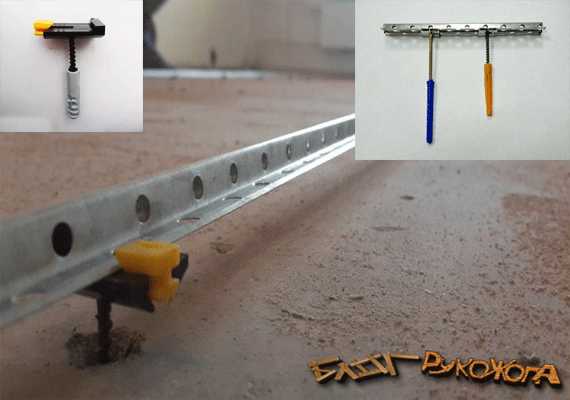 | Фиксация маяков | Направляющие фиксируются путем вкручивания саморезов в дюбеля. Саморезы безо всяких проблем регулируются, что позволяет исполнителю выставить направляющие по требуемому уровню. |