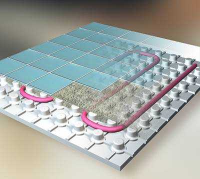 Системы подогрева, которые используют горячую воду, состоят из водонагревателя, который не только греет воду, но и распространяет ее по системе из труб, по которым течет горячая вода. Для создания трубопровода используются гибкие трубы — это могут быть как трубы из синтетического материала (как правило, полиэтилена), или из металлопластика. Именно эти материалы отличаются необходимыми для этой части системы теплого пола качествами: