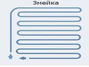Исходя из этого, такую схему лучше применять для узких и длинных коридоров, где сделать спираль затруднительно, а змейка даст разницу температур по противоположным концам.