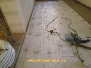 Размечаем пол, учитывая требования, изложенные выше. По проделанной разметке устанавливаем кронштейны. Если был использован пенопласт, то кронштейны будет поставить затруднительно из-за длины дюбеля. В этом случае можно воспользоваться другими методами (коврик, сетка, скобы и т. п.).