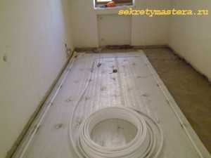 Работа по монтажу теплого пола начинается с правильной подготовки основания. Сначала нужно избавиться от имеющегося покрытия, вплоть до бетонного основания либо плиты перекрытия. На очищенное основание укладывается гидроизоляционны