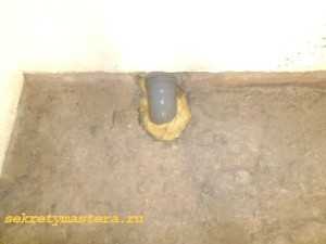 Сухая стяжка необходима для того, чтобы в нее без проблем вкручивать кронштейны для трубы. Но даже если вы будете крепить трубу другим способом, стяжка все равно должна высохнуть для удобства работы. На высохшую стяжку стелим гидробарьер таким образом, чтобы края плёнки заворачивались на стену. Высота заворота должна составлять не менее 10 см.
