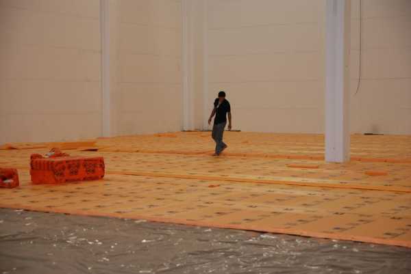 Такой материал отлично подойдет для бетонного пола под стяжку. Дополнительно можно установить систему «теплый пол».
