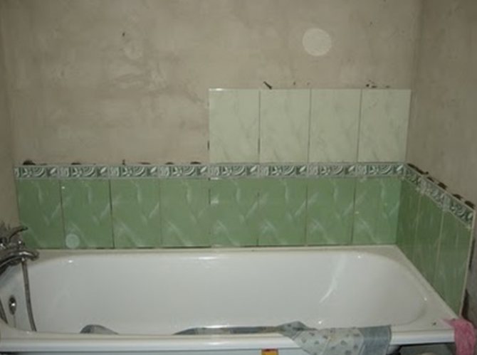 В противном случае ванна может попросту не втиснуться между стенами, расстояние между которыми уменьшилось за счет выравнивающего слоя и толщины самой плитки.