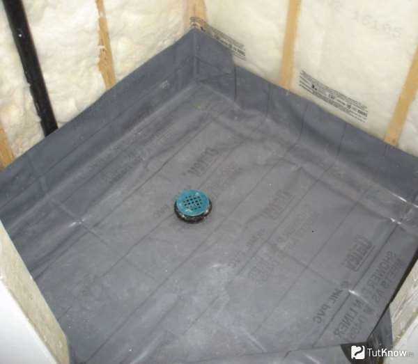 - мембрана – вариант чаще применяется для бани с подпольем на свайном или столбчатом ростверке, пленка крепится к стенам с небольшим провисанием, в нижней точке, соприкасающейся с черновым полом конструкции, в нее врезается сифон или трап;
