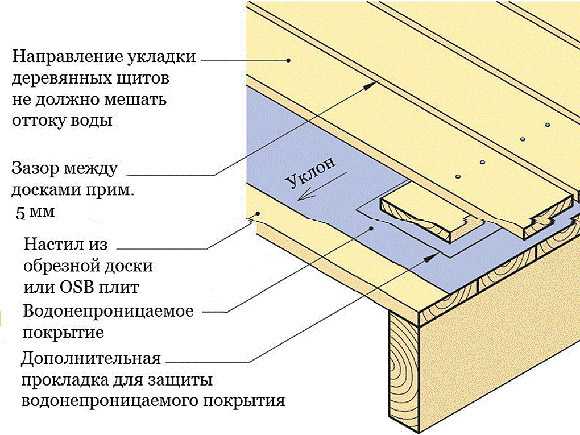 Вода в них собирается благодаря организованным уклонам. Причем уклоны выполняются независимо от того, какой вид покрытия применяется: деревянный, бетонный или на него уложена керамическая плитка.