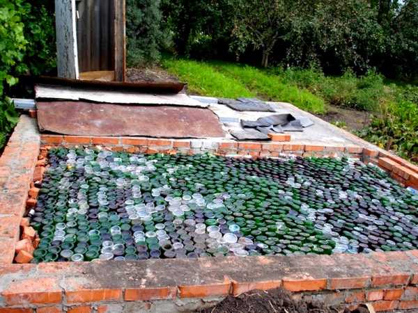Пол в бане из бутылок, описание процесса укладки, видео инструкция