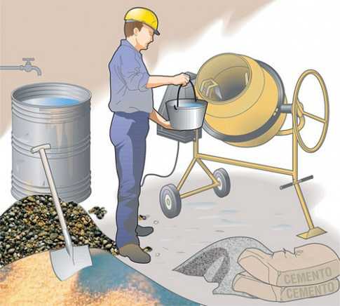 Шаг 3. Готовят бетонный раствор: смешивают сухие компоненты в нужных пропорциях, вливают воду, добавляют пластификатор.