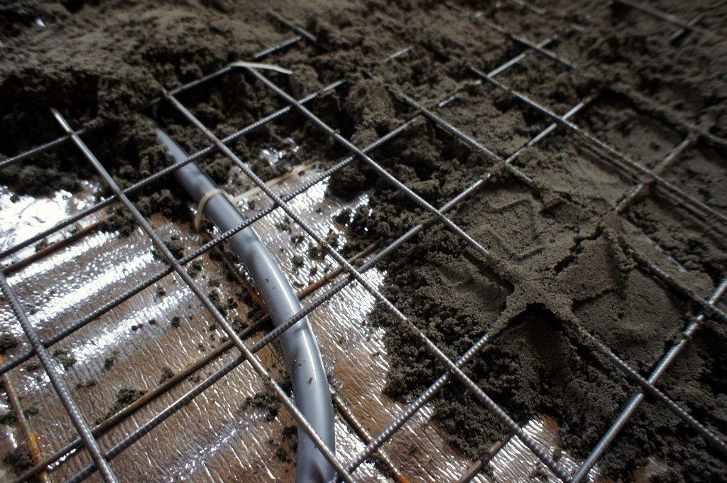 - небольшом слое бетонного покрытия. Заливать значительный слой недопустимо в квартирах или жилых коттеджах, стоящих на неустойчивых почвах или забивных сваях;