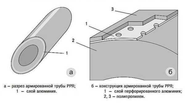 Производители нашли другое решение — они стали делать многослойные трубы. Между двумя слоями чистого пропилена они закладывают стекловолокно или алюминиевую фольгу. Эти материалы нужны не для укрепления или каких-либо других целей, а только для уменьшения теплового удлиннения. Если есть прослойка стекловолокна, температурное расширение в 4-5 раз меньше, а с прослойкой из фольги — в 2 раза. Компенсационные петли по прежнему нужны, но ставятся они реже.