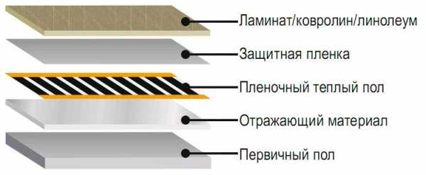 После этого непосредственно на инфракрасный пол укладывают ламинат. Можно также смонтировать плотный линолеум или листы ДСП. Такой пол быстро нагревается. При необходимости можно разобрать ламинат, скатать полотна пленки, перенести их в другое помещение.
