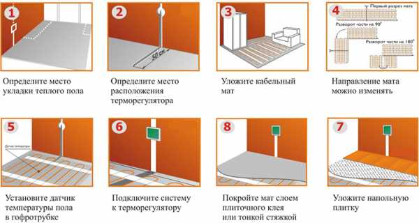 Электрический мат сможет смонтировать даже непрофессиональный строитель. Следует только учитывать требования инструкции производителя. В этом случае система проработает эффективно около 50 лет.