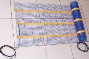 Маты – это тот же кабель, который не нужно специально раскладывать по всей поверхности основания настила. Провод закреплён на сетке из стекловолокна. Его диаметр не превышает 3 мм. Продаются такие маты в рулонах. Вместе с комплектом электрических матов обязательно приобретают соответствующий терморегулятор.