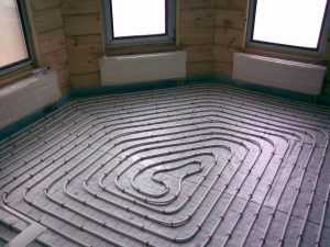 После монтажа труб, подключения их к котлу (монтируется специальный узел теплого пола), потребуется залить систему цементно-песчаной стяжкой. Слой должен составить 5-7 см. При этом важно выдержать все условия создания стяжки. В противном случае она растрескается, работу потребуется переделывать. Вся система приподнимет уровень пола на 10-20 см. Если потолки в помещении невысокие, такой подъем пола будет ощутимым.