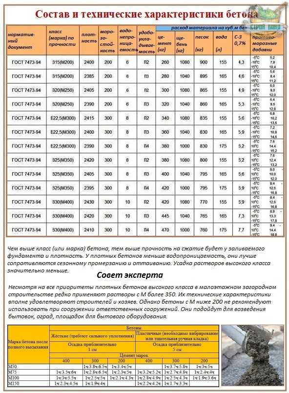 Поэтому при подборе бетона следует ориентироваться на два параметра: