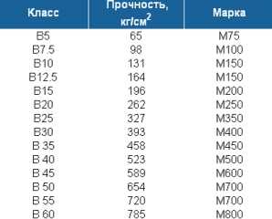Таблица соотношение класса и марки бетона.