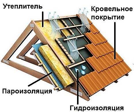 Высота профиля пиломатериала должна на 30 — 40 мм превышать толщину теплоизоляционного слоя. В этом случае образовывается достаточный вентиляционный зазор между гидроизоляцией и утеплителем.