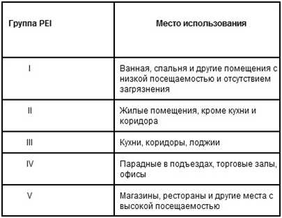 - PEI — класс износостойкости (от I до V)