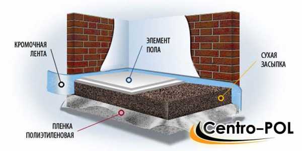 - Обязательно между перекрытием и материалом засыпки должен быть проложен слой полиэтилена или другого препятствующего проникновению влаги материала. Этот слой необходим даже при укладке по бетону;