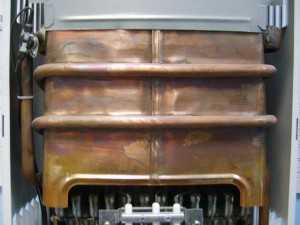 Теплообменники из меди отличаются отличной теплопроводностью, устойчивостью к коррозии и малым весом. Однако в напольных котлах их устанавливают крайне редко. Это обусловлено дороговизной и «капризностью» металла. В процессе работы мощного напольного прибора медь очень быстро изнашивается. Для такой вариант более пригоден.