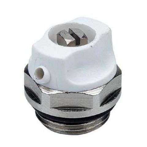 Кран Маевского представляет собой небольших размеров фитинг с только одной резьбой для подключения в систему. С обратной стороны корпуса расположен клапан, вращение которого открывает маленький канал для стравливания воздуха. Именно калиброванное отверстие позволяет выходить воздуху под давлением.