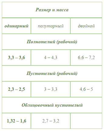 | Вес 1 полнотелого кирпича, кг | 3,9 | 3,7 |