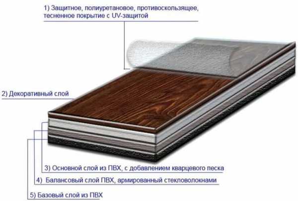 Состав кварц виниловой плитки по слоямПреимущества кварц виниловой плитки