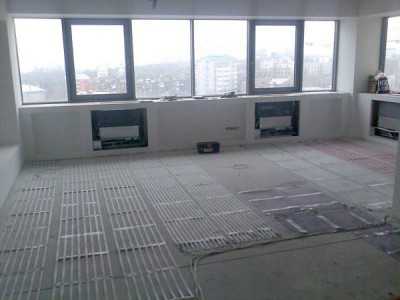 Перед тем как приступать к монтажу пол выравнивается, для него делается стяжка из цемента и песка толщиной не больше 0,3 см. Когда нужно, дополнительно кладется теплоизоляция. Высыхание стяжки займет 3 дня. После этого проводится закрепление демпферной ленты, потом терморегулятора в выбранном месте. Кабель кладут строго по инструкции на упаковке.