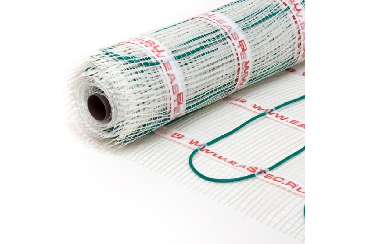 Система устанавливается под стяжкой в слой клеящейся основы. Эффективно распределяет тепло по площади комнаты. Потребляемая мощность – 1000 Вт. Ширина конструкции – 0,5 м, длина – 12,3 м. Способен обогревать площадь до 6 кв. м.