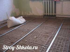 Технологию армирования стяжки опишем на примере укладки сварной сетки.
