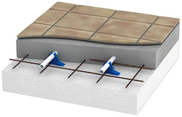 - Если в полу будет находиться система теплого пола, то толщина составляет около 5 см (для электрической системы). Для водяного теплого пола толщина стяжки будет уже 7-10 см.
