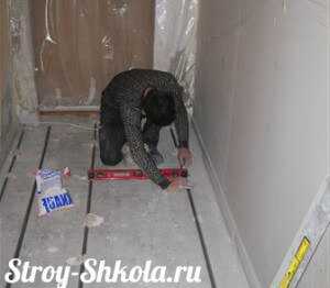 - Укладывается сетка, а весь выделяемый клей разравнивается по поверхности. Слой получается незначительным, но все равно больше используется при последующем настиле напольного покрытия. Но до укладки следует подождать определенное время до полного высыхания.