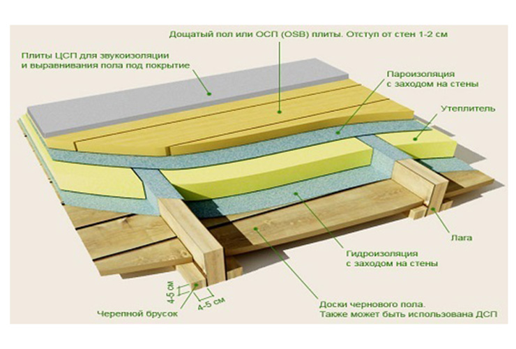 ЭТО ВАЖНО! При желании пространство между лагами можно заполнить изоляционным материалом. Но, если вы живете на первом этаже дома, в котором нет подвала, то делать это нужно в любом случае!