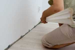 - Начинают демонтаж с плинтуса. С помощью отвертки или шуруповерта выкручивают саморезы, которыми он закреплен. Каждую часть снимают последовательно, начав от двери и двигаясь в одном направлении. Все части нумеруют, чтобы потом установить в обратном порядке.