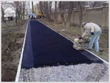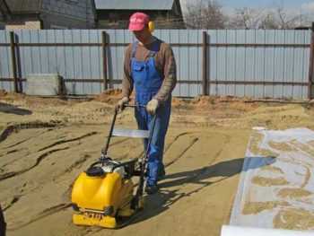 Если асфальтированная поверхность крепкая и ровная, можно сразу приступить к засыпке 10-сантиметрового песочного слоя. После разравнивания его уплотняют с помощью трамбовки. Лучше применять вибрационную плиту с системой системы капельного полива, так как она дает возможность одинаково уплотнить песок.