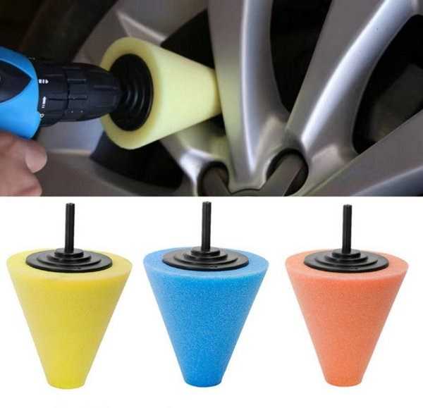 Какие насадки для полировки кузова автомобиля лучше использовать, нет однозначного ответа. Для достижения результата понадобится купить набор соответствующей оснастки. Однако приобретение такого набора — это еще не гарантия того, что работы будут выполнены качественно. Обратите внимание на то, какие виды полировальных паст для автомобилей бывают, и как их выбирать (ссылка). Для полировки труднодоступных мест, например, литых автомобильных дисков, применяется специальной формы оснастка — цилиндрическая, конусная и другие.