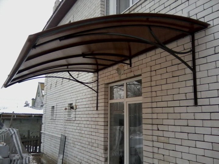 Передовые технологии позволяют выполнить козырьки для крыльца из различных кровельных материалов любой сложности. Использование современных материалов обеспечивают многолетнюю службу изделия. Сегодня навесы из монолитного и сотового поликарбоната пользуются повышенным спросом. Козырек из поликарбоната может иметь самые разнообразные формы: дугообразную, арочную, наклонную, куполообразную и комбинированную.
