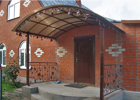 Такой вариант оптимален, так как при использовании металла можно соорудить достаточно надежный каркас навеса над крыльцом;