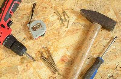 Для работы вам понадобится лобзик, дрель, саморезы, рулетка, строительный уровень. Для монтажа такого покрытия можно применять простые ОСП. Более надежное крепление могут обеспечить пазы. Стыки плит происходят на лагах, но если они слишком большие, то придется использовать дополнительные опорные элементы.