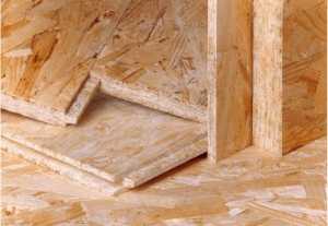 Ориентированно-стружечная плита состоит из нескольких слоев прессованной, а затем проклеенной специальными водостойкими смолами древесной щепы. Склеивают ее в три слоя. На внешних сторонах щепа кладется вдоль длины, внутри – перпендикулярно. Это решение придает новому строительному материалу особенную прочность.
