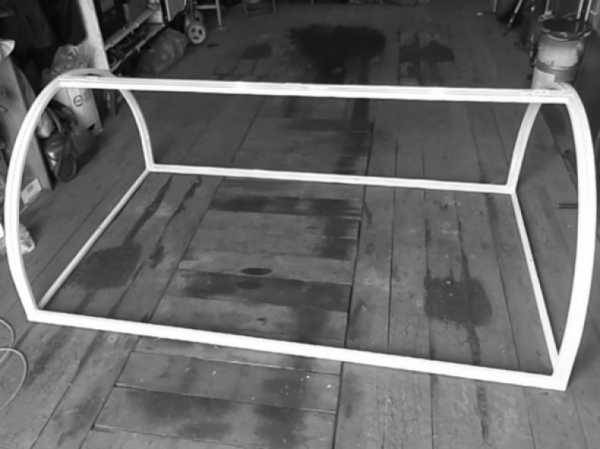 Принцип сборки каркаса из металлического профиля аналогичен, как и для деревянной конструкции. Отличием лишь являются полукруглые створки. Для них придется на специализирующемся предприятии согнуть дуги.
