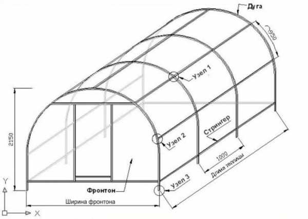 На следующей схеме показана конструкция теплицы из поликарбоната