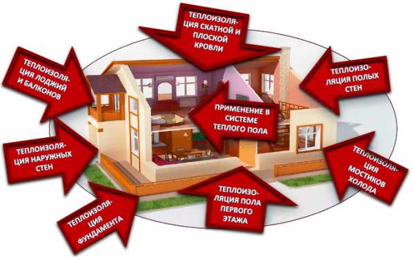 Материал активно используется в качестве утеплителя в различных ситуациях, таких как: