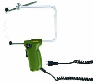 Если требуется более фигурная резка, можно воспользоваться терморезаком. По принципу действия он схож со струной, но в качестве основного режущего элемента выступает нихромовая проволока, присоединенная одним концом к термоизоляционной ручке. С помощью такого инструмента удобно делать углубления и специфические контуры изделия.