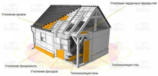 - Для уменьшения отдачи тепла наружных стен здания, подвальных и внутренних перегородок.