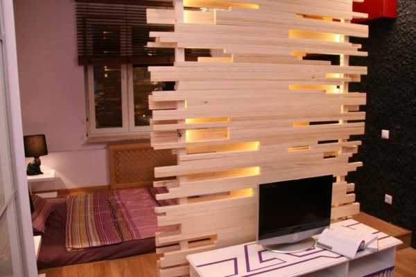 Время от времени складывающиеся обстоятельства вынуждают владельцев небольших квартир прибегнуть к разделению и без того скромного жилого пространства. Руководствуясь нежеланием возведения в тесном помещении дополнительной стены, сооружается перегородка в комнате из различных предметов интерьера.
