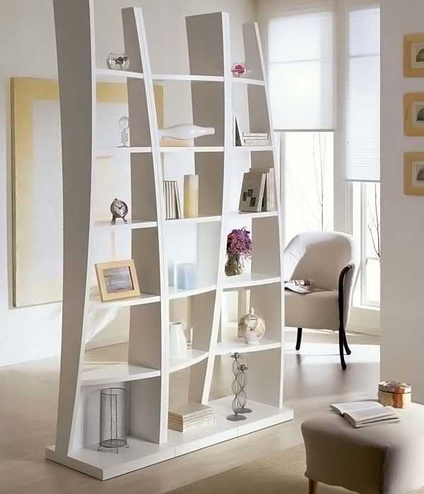 Стеллаж-перегородка для комнаты (40 фото): оригинально, функционально и ненавязчиво