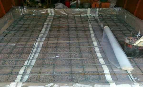 - После этого заливается бетон слоем 8 см, который лучше укрепить армированием.