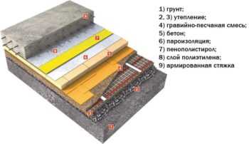 Если выбор пал в пользу бетонного настила, укладываемого по грунту, то здесь сначала потребуется сделать засыпку из речного песка. Его насыпают в один слой и потом уплотняют. Далее идёт слой засыпки из щебня или керамзита. После этого делают черновую стяжку из бетонного раствора. Как только она высохнет, на неё укладывают паро- и гидроизоляционный материал, вслед за ним настилают утеплитель.