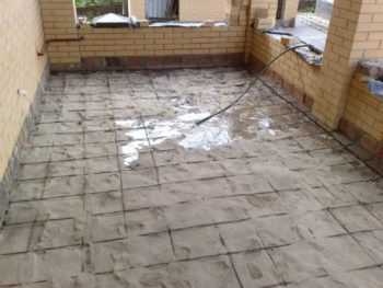 - После высыхания основания на него приклеивается стеклоизол, по которому заливается еще слой бетона примерно 5 см толщиной.